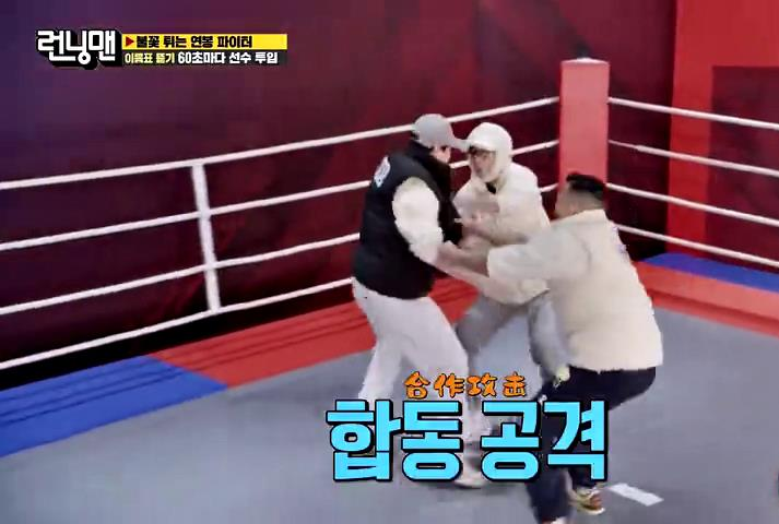 紧接着梁世灿和刘在石分别登场,梁世灿一对二,也很快被淘汰。
