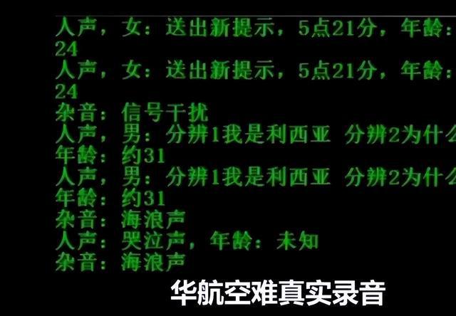 这件事发生在2002年5月,中华航空一架民航飞机离奇坠毁在澎湖海域,于是机上的200多人全部遇难,结果过了一段时间后,网上流传着一段“华航遇难者”的语音留言。内容是“送出,星期四,五点二十一分”接下来就是长达十秒钟的哭泣声,再之后又会听到一个人说“不要,我不要死,我不要死在这里!”时间到了1分钟后自动切断。