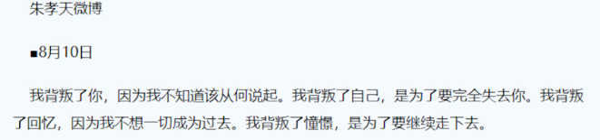 其实朱孝天早前在微博发布的一段话,就已经透露了他的想法: