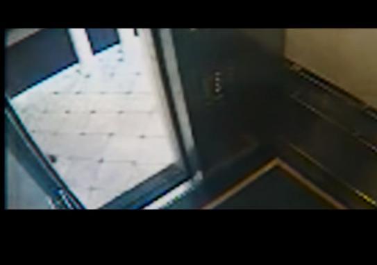 之后,她又走到电梯口不断向外张望,看右侧的拐角处。她突然跳出电梯,迈着奇怪的像是方块舞的步伐,反复多次进出电梯。