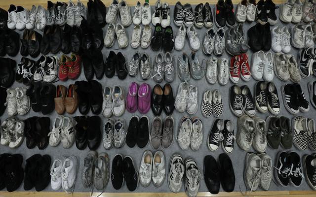 失物招领处设在一家体育馆内,场馆地面和桌子上摆满了个人物品,包括124个包、258件衣服、256双鞋子和156个电子产品等。很多衣服和鞋子上满是污渍,甚至沾有明显的血迹。还有皮鞋的鞋跟脱落,有眼镜镜腿被折断、镜片被踩碎。