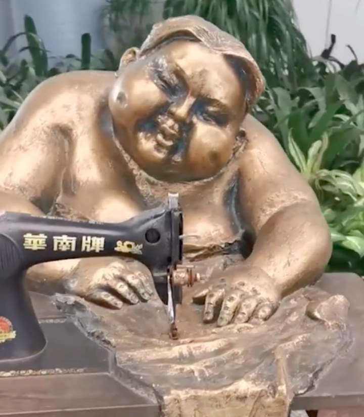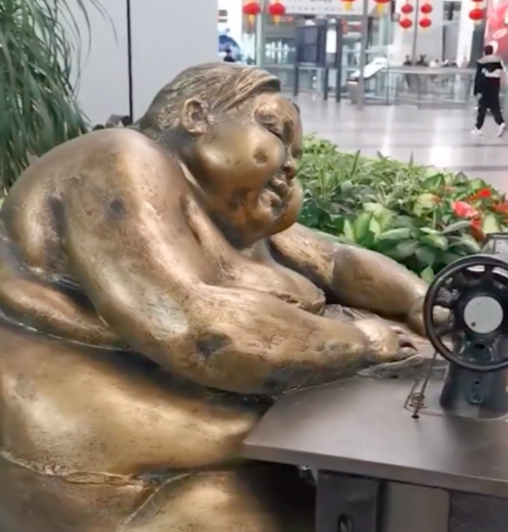 1月18日,据环球网报道,有网友发视频称,广州白云机场大厅一个肥胖的女人踩缝纫机的雕塑有损中国女性形象。